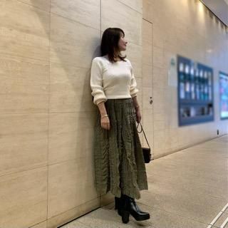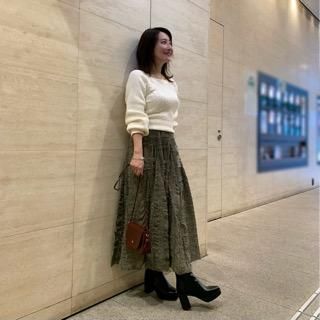 スクエアネックは顔回りスッキリ見せてくれるし、カジュアルになりがちなケーブルニットも女性らしい雰囲気に仕上がります。