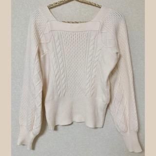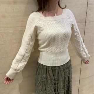 スクエアネックがデコルテを綺麗に見せてくれるケーブルニット。