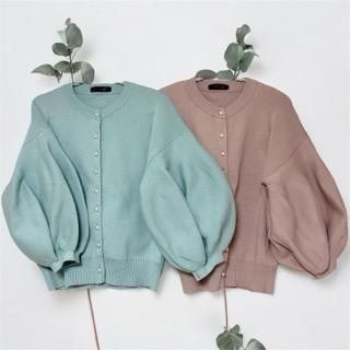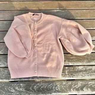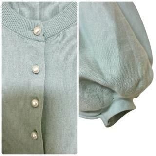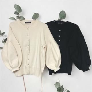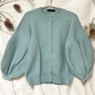 パールボタンとぽわんとしたお袖が大人可愛いニットカーディガン♪